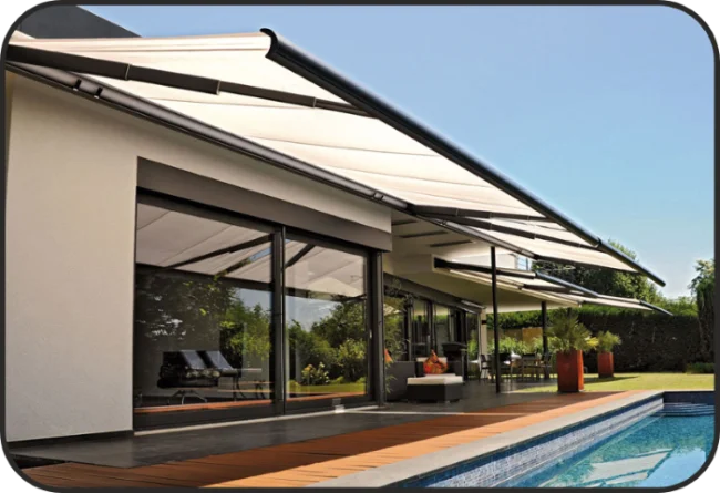 סוכך אידאלי עבור הגנה מפני השמש אבל פחות יעיל בחורף. הסוכך בנוי משתי זרועות אלומיניום עם ציר לקיפול בכל אחת. הזרועות מחוברות מצד אחד לקיר ומהצד השני לפס אלומיניום, בין הקיר לפס נמתח הבד.